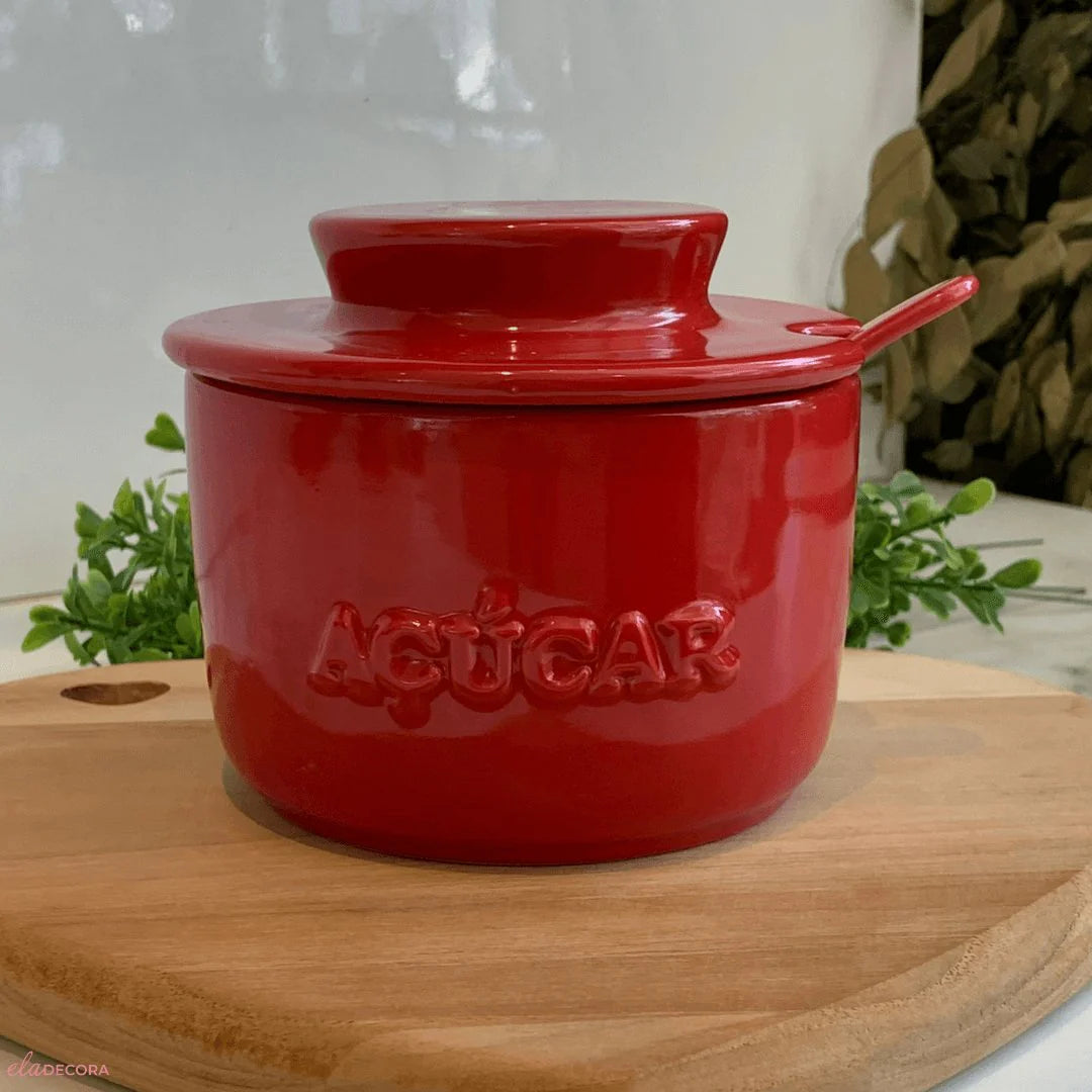 O Açucareiro com Colher em Cerâmica Vermelho é o produto perfeito para armazenar o açucar unindo elegância, modernidade e funcionalidade, item certo para trazer um toque especial aos seus momentos.O açucareiro acompanha uma belíssima colher para auxiliar no manuseio e no momento de pegar o açúcar, além de possuir o acabamento na belíssima cor vermelha que traz um toque estiloso ao item.
