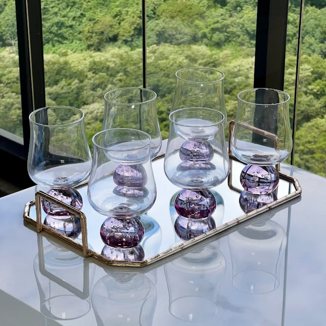 Combina um corpo transparente e ergonômico com uma base em formato de esfera, maciça e na cor fumê.