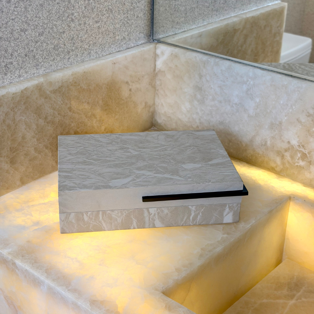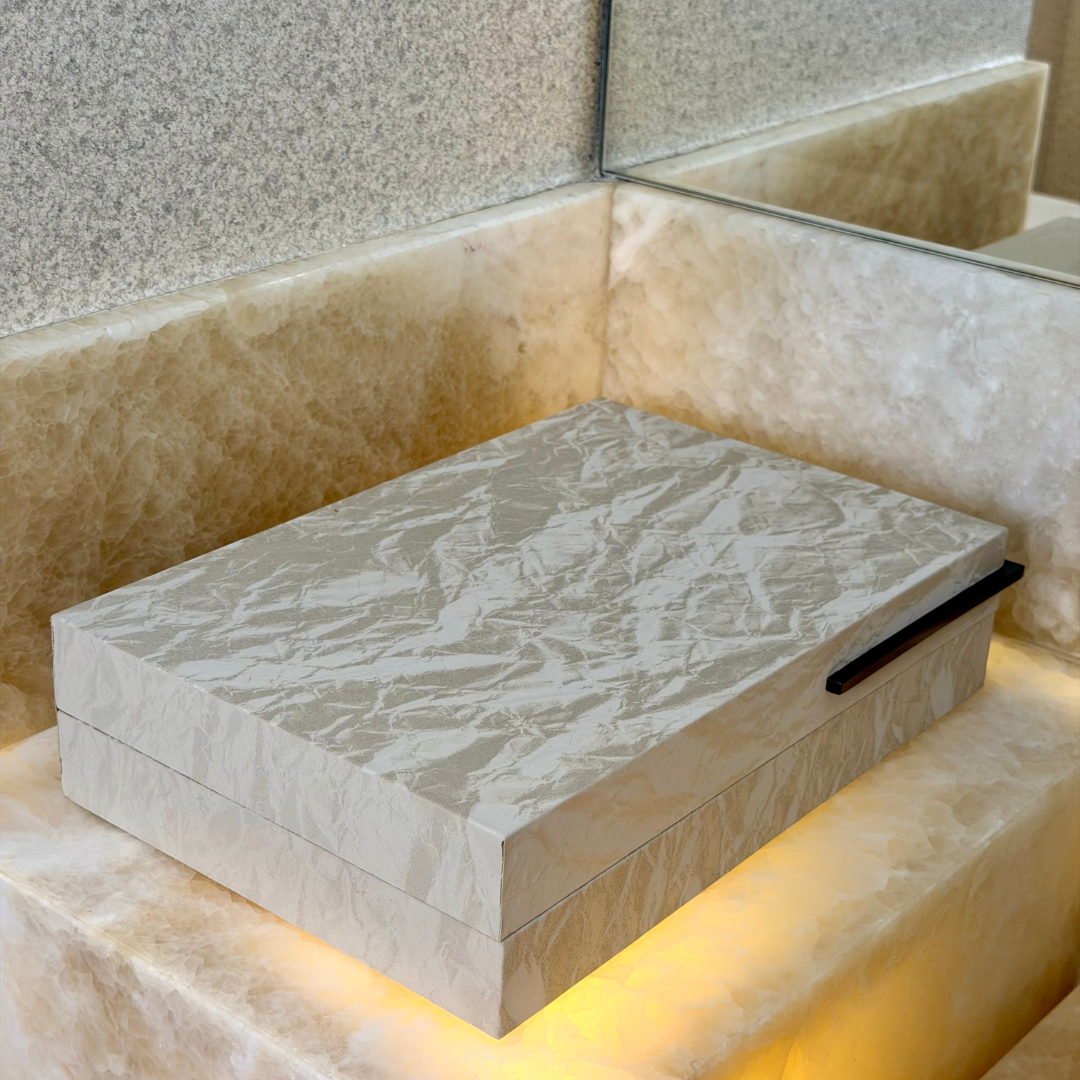 A Caixa Decorativa em MDF e PU 33,5cm P é uma peça que combina perfeitamente estilo e praticidade, sendo ideal para quem busca uma solução de organização que também funcione como item decorativo.