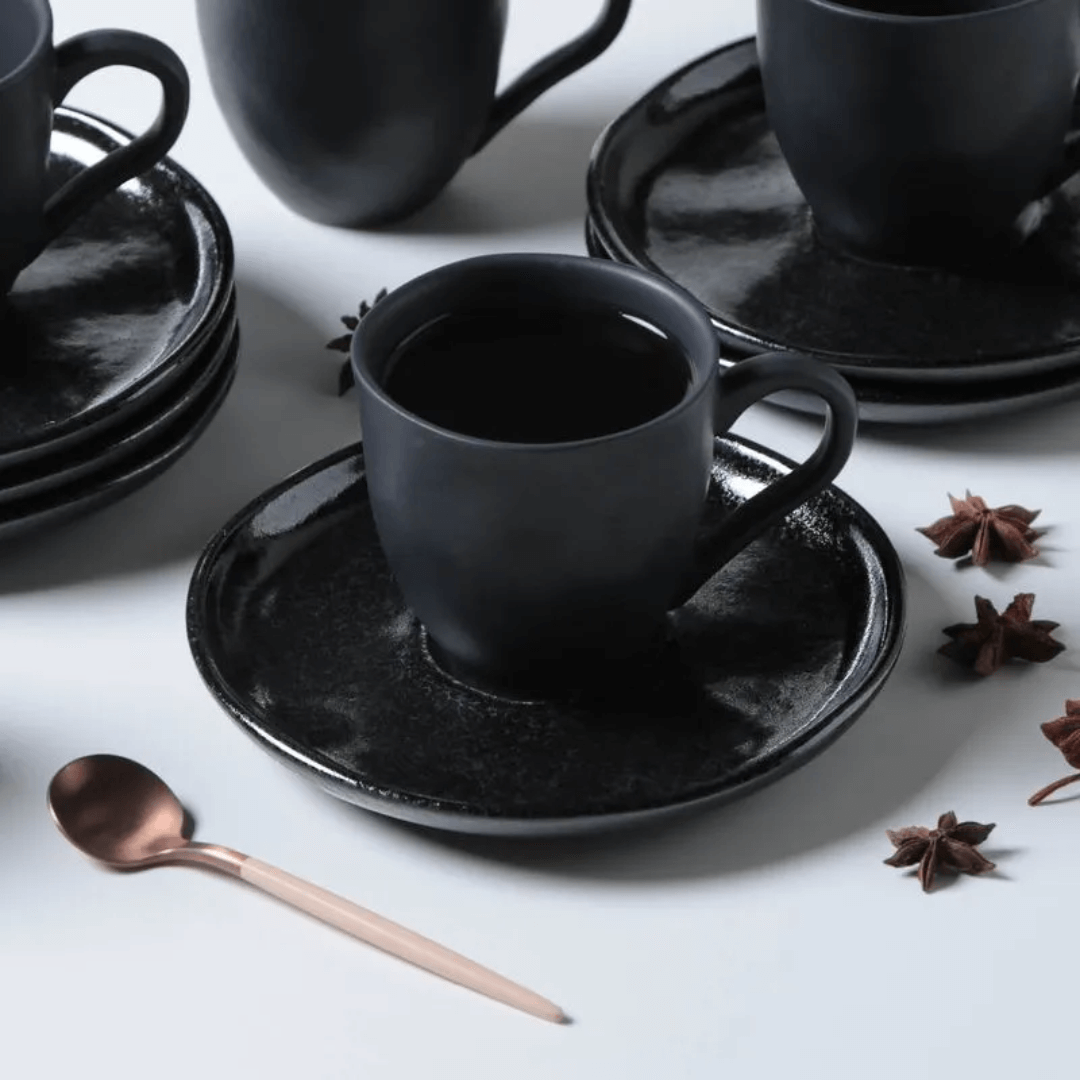 Eleve o momento do café com o Jogo de 6 Xícaras de Café com Pires Orgânico Eclipse 120ml.