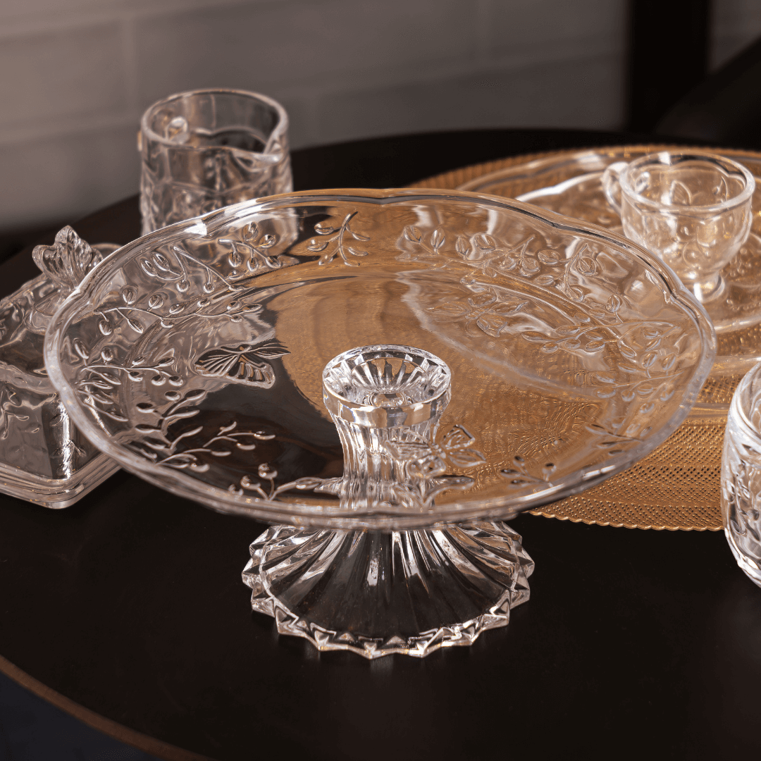 O Prato para Bolo com Pé em Cristal New Butterfly 27cm é a peça ideal para transformar suas composições à mesa em momentos memoráveis.