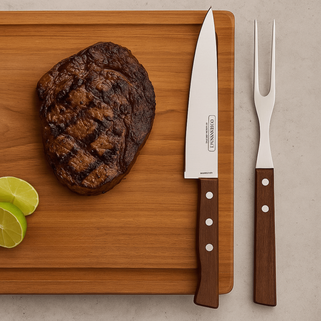 O Jogo Trinchante para Churrasco Tradicional Aço Inox e Cabo de Madeira 2 Peças Tramontina é o conjunto indispensável para os amantes de churrasco que valorizam qualidade, durabilidade e tradição.