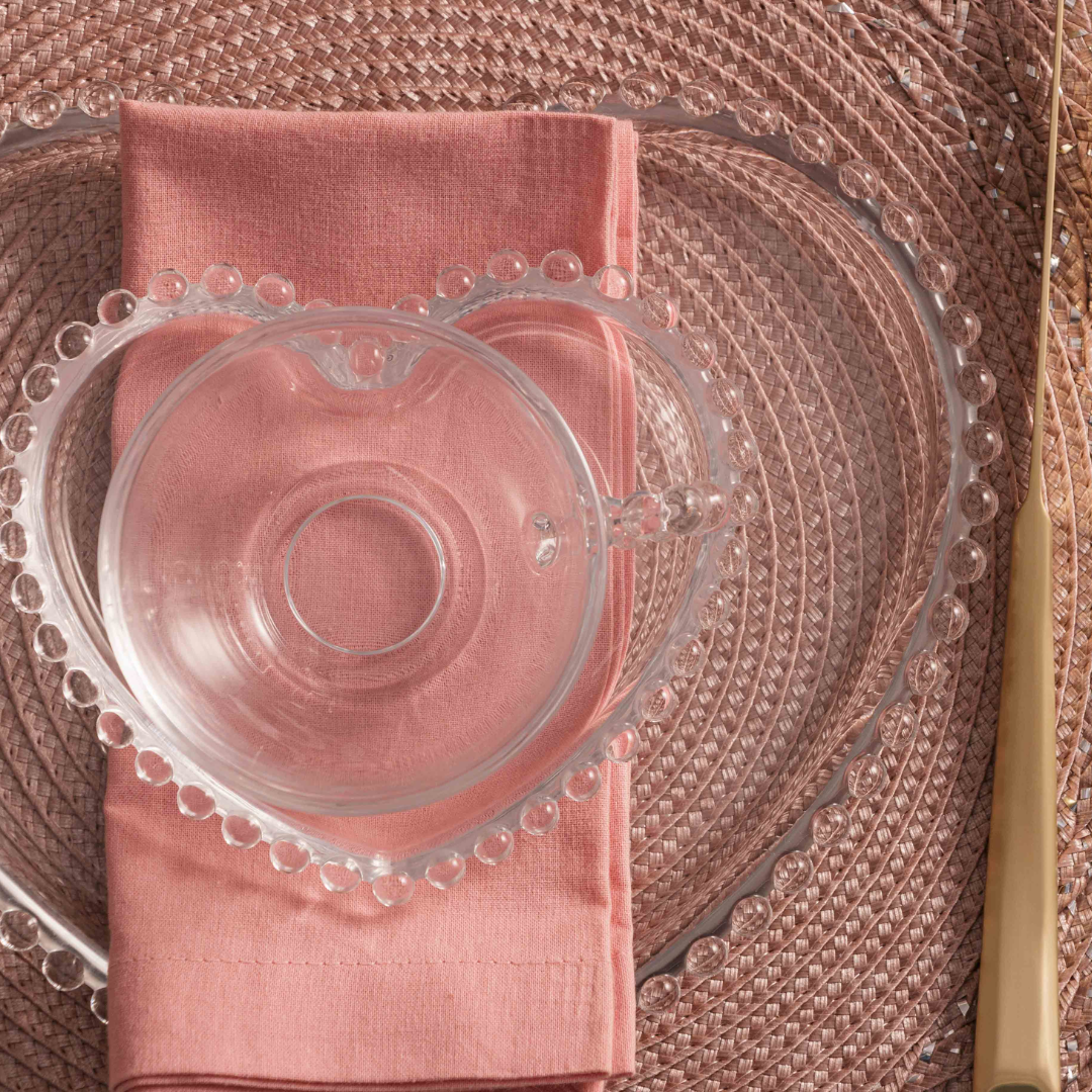 Este Prato de Cristal Coração Pearl Bolinha é perfeito para servir suas refeições ou decorar sua mesa, ele vai adicionar um toque elegante e sofisticado à sua mesa. A forma de coração e as bolinhas peroladas adicionam um charme especial a este prato.