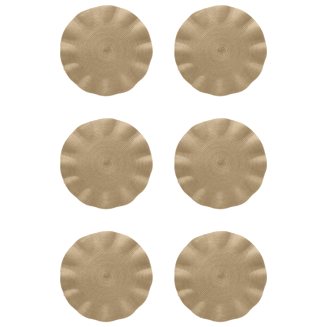 Transforme qualquer refeição em um momento especial com o Kit 6 Jogos Americanos Babado Dourado 38cm.