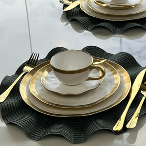 Prato Raso Dubai em Porcelana Preto e Dourado 25cm