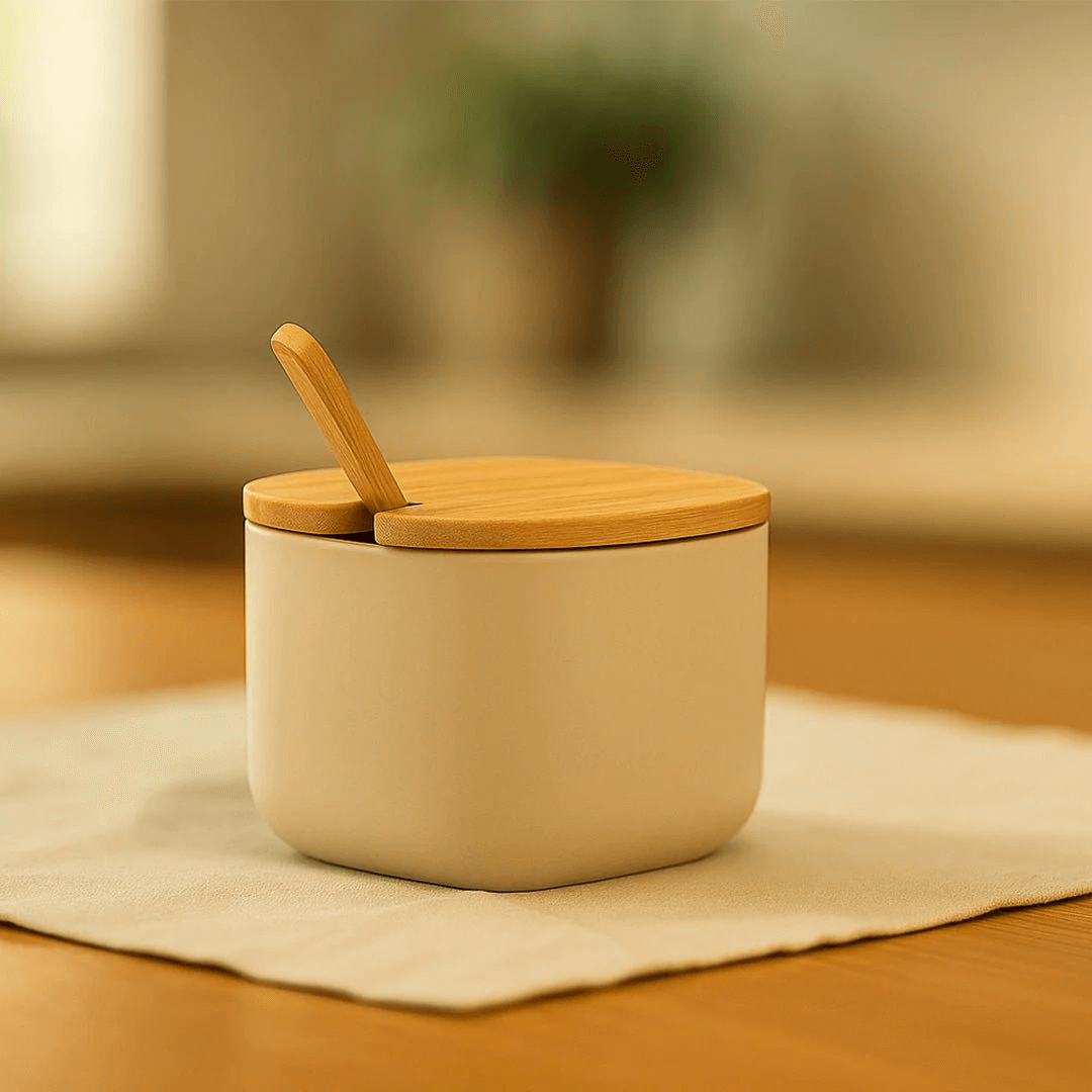 Compacto e funcional, é ideal para armazenar açúcar, adoçante, café, chá ou pequenas porções de mantimentos, mantendo tudo sempre à mão com estilo.