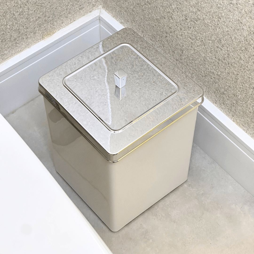 Leve leveza e modernidade para seus ambientes com a Lixeira Quadrada Branca com Tampa Cromada 6,5 Litros.