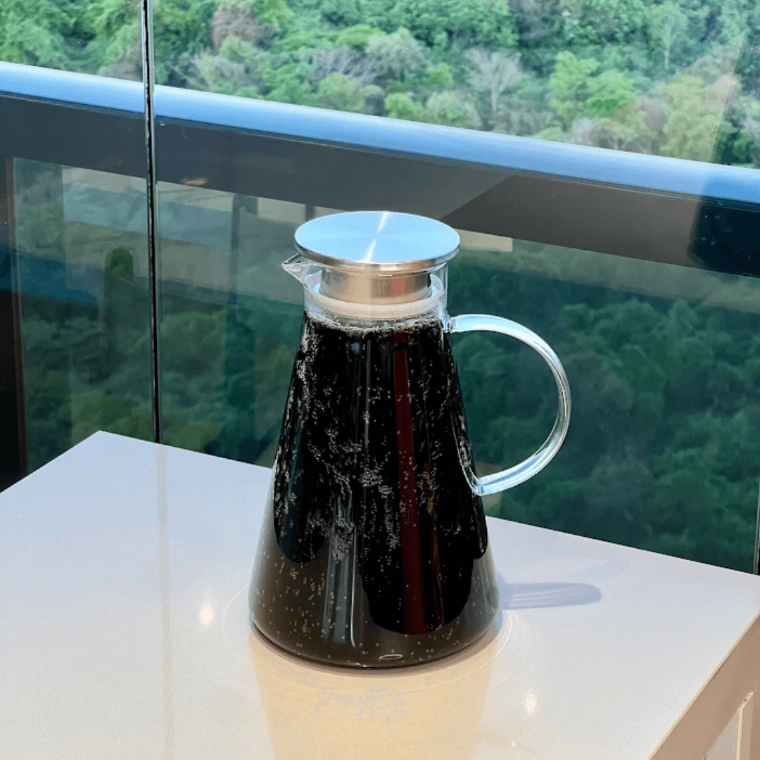 Feita em vidro borossilicato de alta qualidade, ela é resistente a choques térmicos e ideal para servir desde sucos gelados até chás quentes. A tampa de metal traz um acabamento elegante, além de manter a bebida protegida.