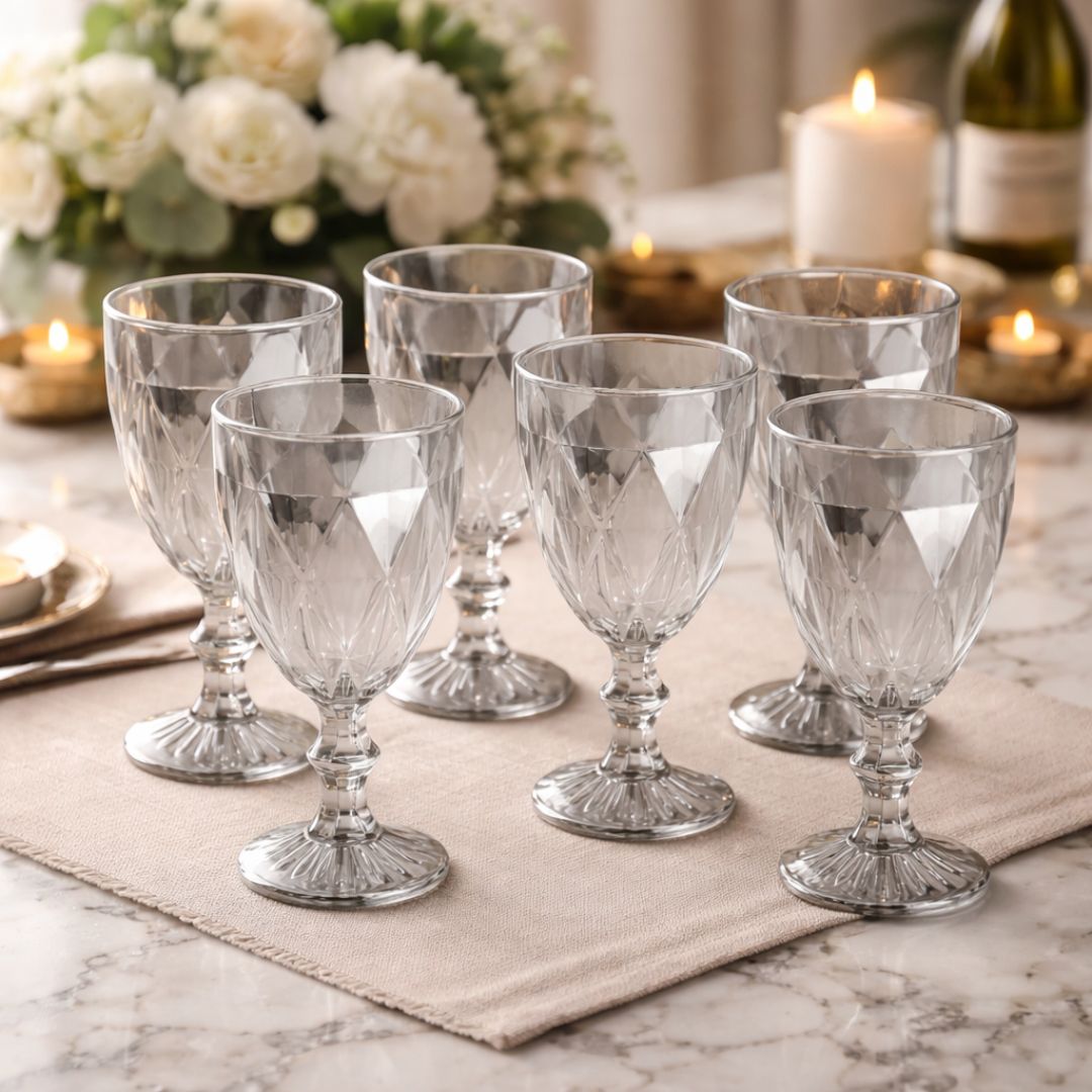 Aprecie suas bebidas favoritas com a Taça Para Água De Vidro Cinza Fumê Metalizado Diamond - 325 ml
