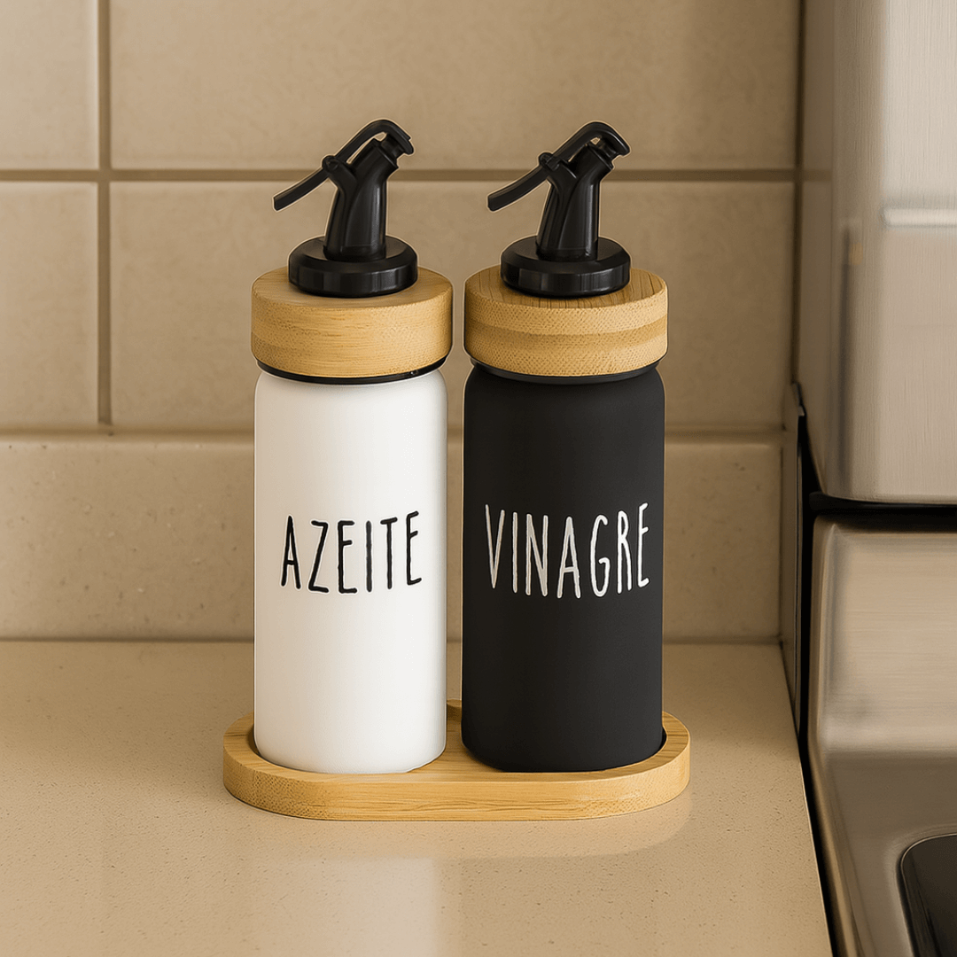 • O conjunto é perfeito para armazenar azeite, vinagre e outros temperos com muito mais charme e organização;