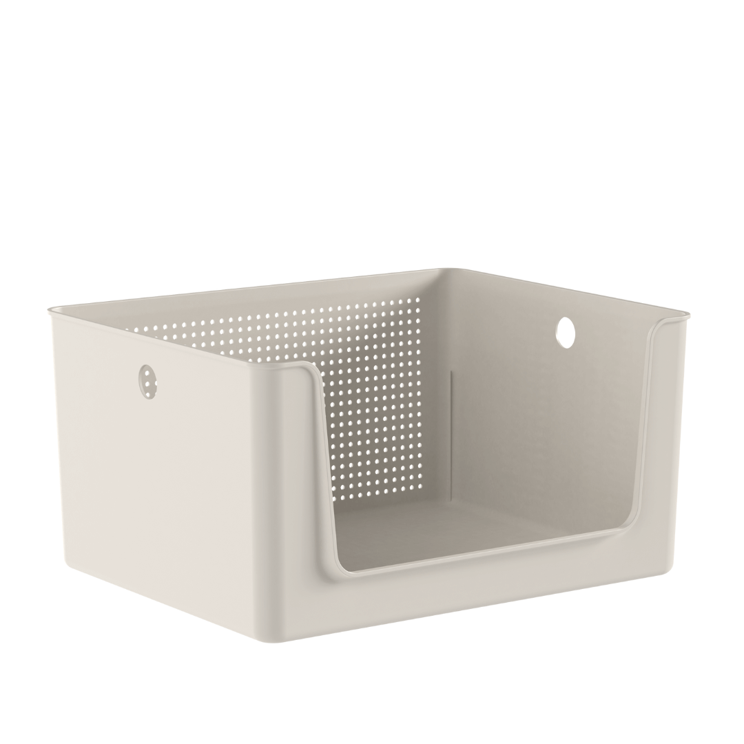 Abertura frontal, que facilita o acesso mesmo com o cesto empilhado.