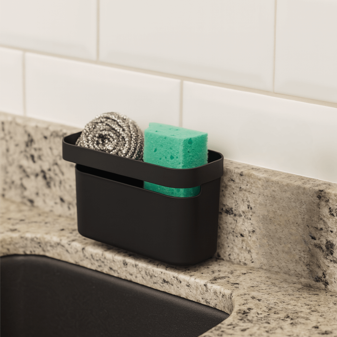 O Organizador de Pia Porta Detergente Trium Max Preto Fechado é um produto compacto, mas com espaço perfeito para organizar todos os produtos de uso da pia.