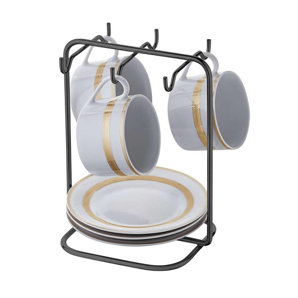 Utilize o Suporte Porta Pires Maior E Xícara De Chá Ônix e garanta que as xícaras e os pires fiquem organizados, de fácil acesso enquanto decora a cozinha.