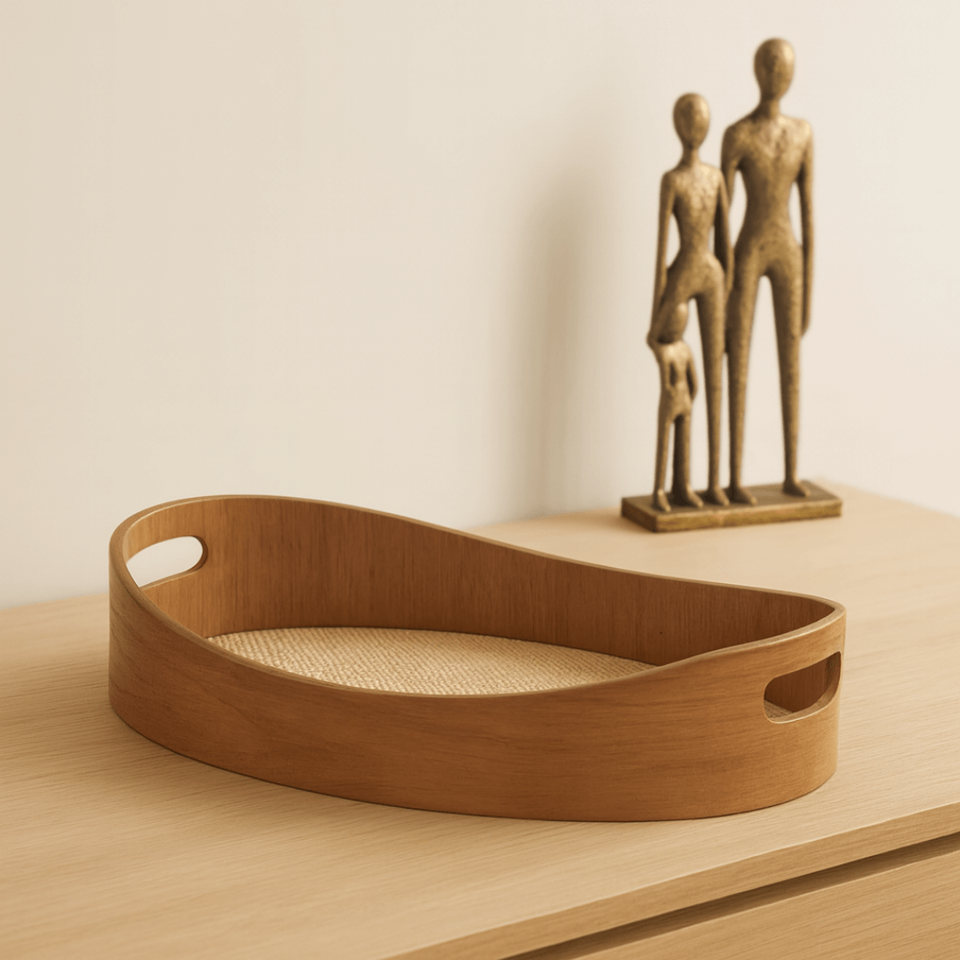 A bandeja combina beleza orgânica e utilidade em uma peça única, ideal para complementar a decoração da sua casa com sofisticação e praticidade.