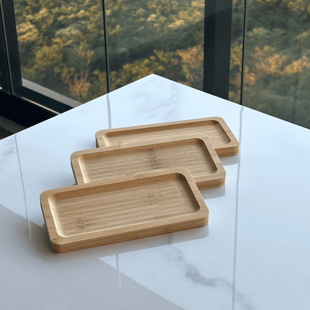 Eleve suas reuniões e momentos de descontração com o Kit 3 Petisqueiras Bandeja Retangular de Bambu 28cm.