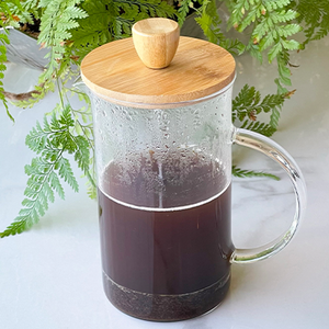 Caneca de Vidro com Canudo e Tampa de Bambu 400ml