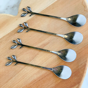 Jogo de 4 Colheres Aço Inox Para Chá Leaves Folhas