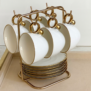O Conjunto 6 Colheres para café Com Suporte Dourada, além de lindo é funcional. O copo sai da base e as colheres tem um detalhe todo especial, cabo dourado torcido com um cristal na ponta, dando um visual delicado e charmoso; O jogo é...- R$ 199,90