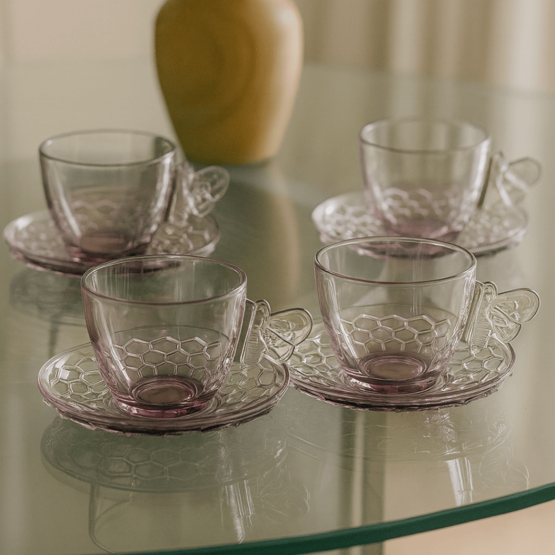 Comece seu dia com mais sofisticação, leveza e charme com o lindo Jogo 4 Xicaras de Café com Pires Rainbow Bee 80ml.