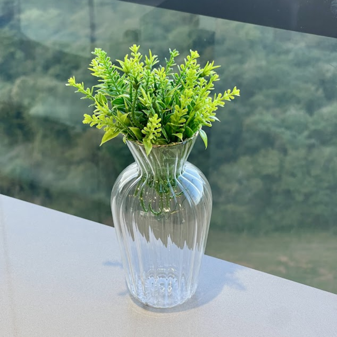 O Mini Vaso com Borda Dourada G é uma peça decorativa charmosa e sofisticada, ideal para quem valoriza o equilíbrio entre minimalismo e requinte na decoração.