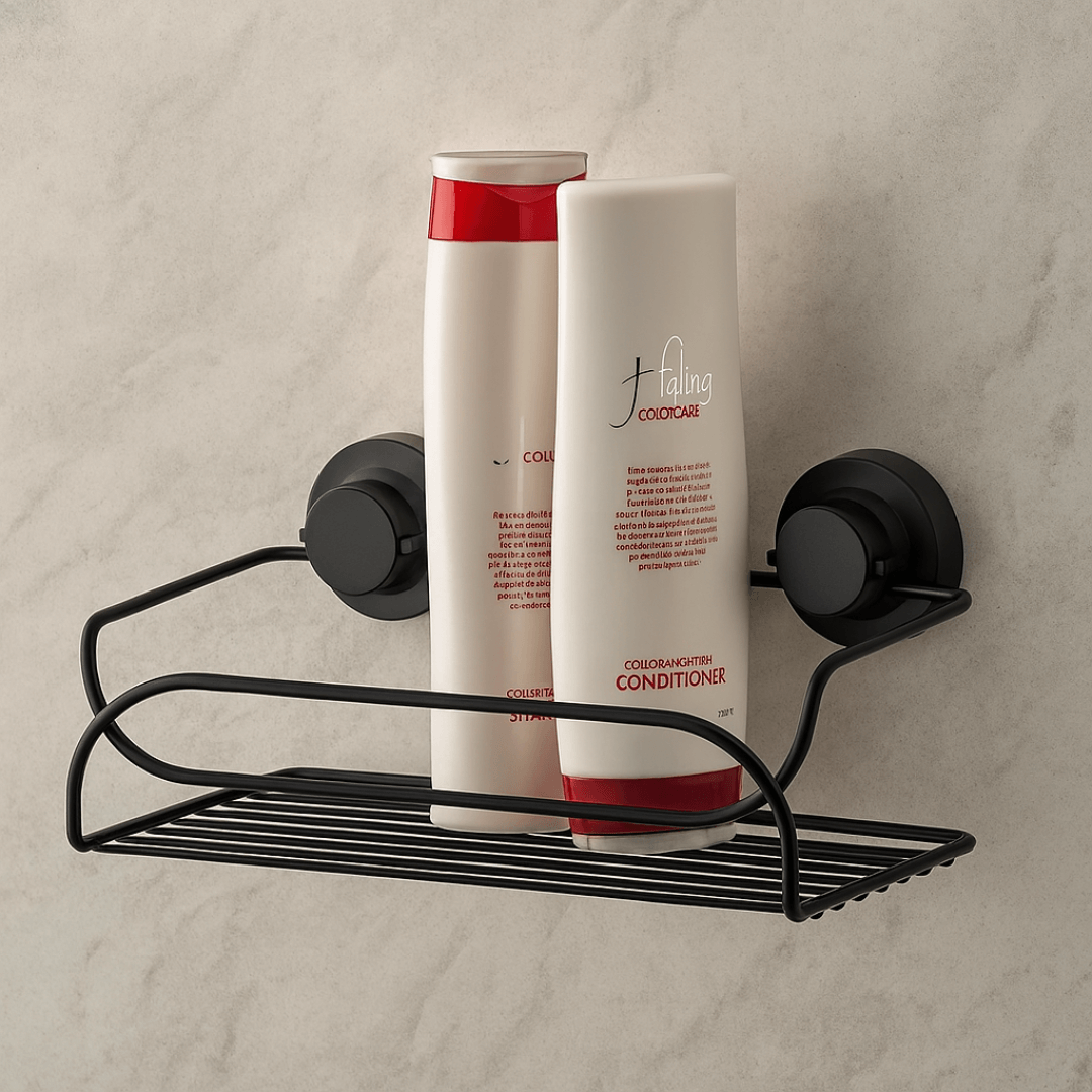 O Suporte Cesto Multiuso com Fixação por Ventosa em Preto Fosco, uma solução elegante e prática para organizar seus itens essenciais em qualquer ambiente.