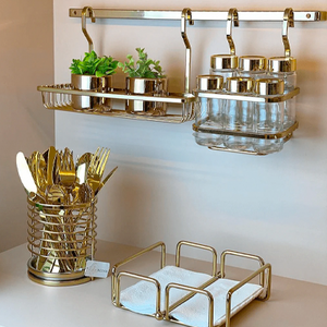 Cesto Multiuso Suporte Retangular Para Barra Dourado