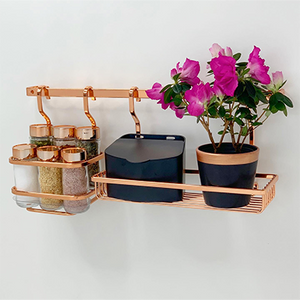 Com o Suporte Cesto Retangular Duplo Para Barra Rose Gold, você otimiza o espaços da cozinha, deixando a bancada livre para a preparação dos alimentos e outros utensílios. Deixe à mão os produtos que utiliza com frequência para ganhar tempo; Pode ser usado em...- R$ 267,90